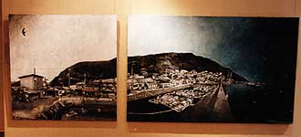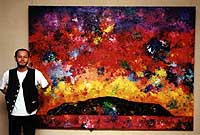 作品16と針間さん。それぞれの絵はかなり大きいものです。