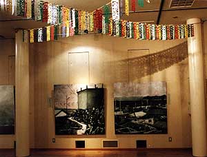 会場の天井には、神舞の切飾りを模した「少年の島」の切飾りが。