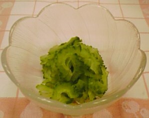 ゴーヤの緑色がきれいで・・うす〜く切って、さっと、たまがしてみました