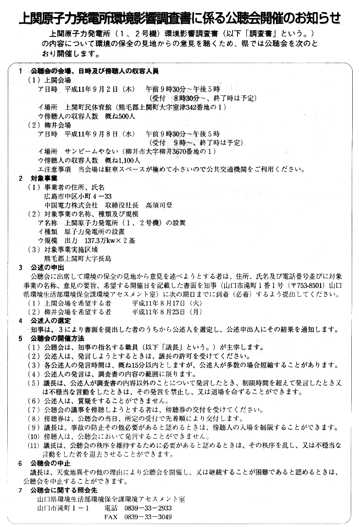 山口県主催の公聴会について
