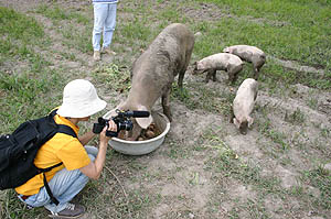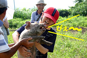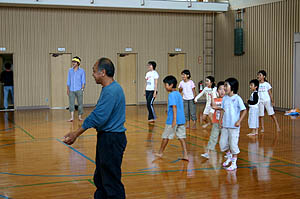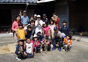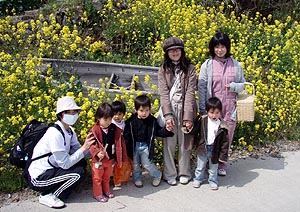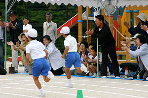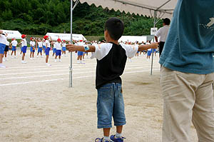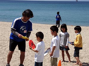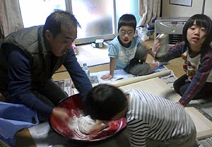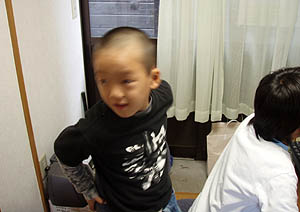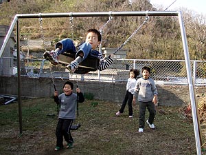 ズボンを乾かしながら蓬莱館で昼御飯を食べて、午後からはエベスの子供たちと江本の子供たちと一緒に学校に上がって遊んだ。ユータローくんは12月にみかんもぎに一緒に来てたのでエベスの子供たちとはもう顔なじみで仲良しなのだ。どうやらカズマにライバル意識を持っているようだった。(^_^;)夕方までみんなと遊んでもらって満足そうだった。 |