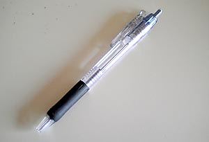 写真は大事な仕事道具、バインダークリップ式のボールペン。作業服の腕のポケットにさしているんだけど、だいたいひと月に1本ずつ買っている。もちろんそんなにインクを使うのではないが、お客さんのところによく忘れてしまうのだ(ーー;)。昨日も大島で忘れてきたので、帰りにメガマートで買った・・(~_~;) |