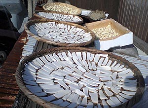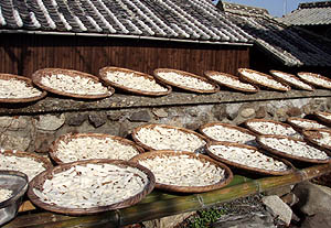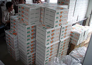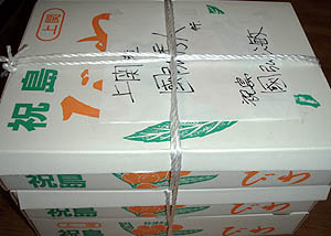 フォトコンテストの賞品詰め合わせセットの中にミカンを入れようと思っていたら、今年は早生ミカンが不作でとても少ないのだそうで、大量入手は困難なようだ。でもその代わりにとてもオイシイと評判の河崎屋さんのサツマイモを手配した。親父は「イモならうちにもあらぁ」と言っていたが、やはり賞品にするには祝島を代表する美味しいイモでないとね!(^o^;)。 |
