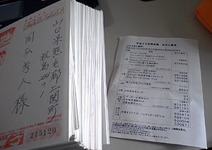 午前中は大島で仕事。大島のシッポの方だったので、室積からは片道一時間半くらいかかった。睡眠不足で、帰り路はちょっとヤバかった・・。アパートに帰って来てから、とりあえず眠たいので、少しだけ眠ろうと思ってふとんに入ったら、目覚ましを掛け忘れていて、目が覚めたら夜の8時過ぎだった(^_^;)。それから会報の印刷を開始。11時前までかかって印刷完了!(^O^)/ |