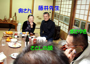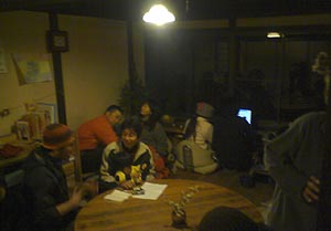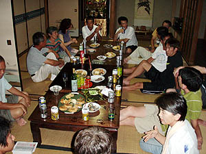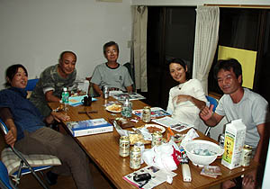 夜は民宿にて先生を囲んで飲み会。夜中までワイワイといろんな話をしながら飲んだ(^_^)。明日はまた数名帰ってくるようなので、さらに賑やかになると思う。 |