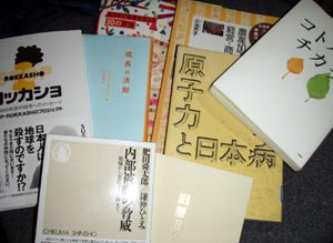 今年に入ってから、買ったり借りたりもらったりした本が10冊以上あり、どの本も読みたいのだが、なかなか読む時間がなくて、読みかけの本がたまる一方(ーー;)。明日からは1時間くらいは読書の時間を作るように努力してみよう。 |
