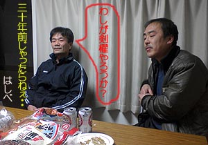 子供たちとホッケーゲームをしたり、坊主めくり(蛭子家では「坊主起こし」と言うらしい)をして遊んでいるうちに、そばが出来上がって、僕達にも振舞われた。麺はちょっと短めだったが、ツユは抜群に美味しかった。兄貴と二人で「こりゃあ今まで食べたそばの中で一番うまいツユじゃったかも知れんのう・・」と感心した。えびす屋は店だけじゃなくて食堂もせりゃあえいのに・・とマジで思う。 夜、ベイビーと飲みながら「今、同級生で身長順に並べたらどういう順番になるかのう」という話になった。二人とも中学校まではこんびい順の1・2番争いをしていたが、今は結構背の高い方じゃなかろうかと思う。二人の意見ではヒロシかカッツーが一番こんびいんじゃないか・・ということになった(~_~;)。 |