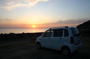 午後から大島へ。こないだ大島に行く途中に大島大橋の上ですごくきれいな真っ赤な夕陽を見たので、今日も期待したが、今日は黄金色の夕陽だった。それはそれできれいだったが、橋の上から写真を撮ろうと思って車を大畠側の駐車場に停めて、橋の途中まで歩いていってしばらくたたずんでいたら、寒くて寒くて・・(*_*)。夕陽も途中で雲に隠れたので、風邪を引かんうちに帰ってきた。夕暮れの海を眺めながら188号線を走っていると、とても気持ちが安らぐ。最近ストレスが少ないのはこの景色を見ているからかもしれない。明日も午後から大島なので帰り道が楽しみだ。 |