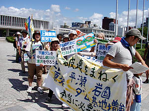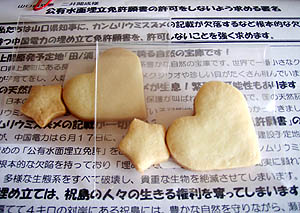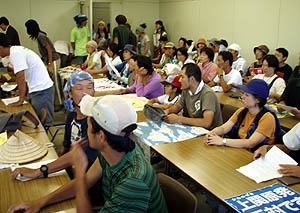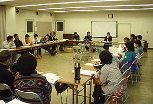 夜は島田公民館での「六ヶ所村茶会」に参加。「六ヶ所村ラプソディ」の上映会で各地を回っている富田さんを囲んで、六ヶ所村再処理工場のことや上関原発のことで話し合った。 |