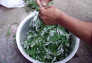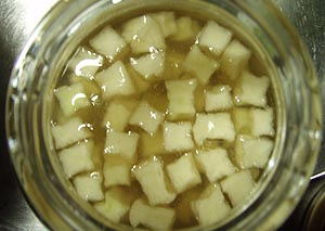 帰りに東和町の道の駅の売店に寄っておみやげものの研究(^_^;)。今度来たら買おうと思ってた「木の葉煎餅」を手にとってみたが、どう見ても乾燥させた葉っぱにしか思えなくて、そんなに美味しそうな気がしないので、またやめて「わさび焼きわかめ」に変更した(~_~;)。 |