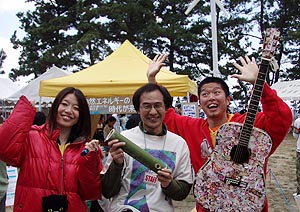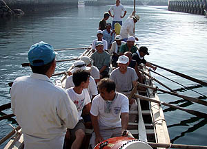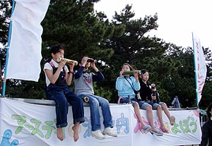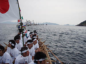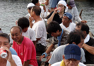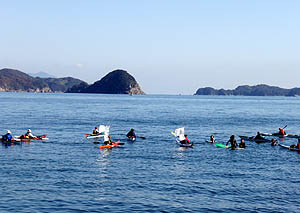 夜は「いこいの家」で歓迎会。カヤック隊の皆さんの他に、出迎え隊の皆さん、祝島の若いし?、四国からやってきたヤポネシア号の皆さん、映画監督の鎌仲さんなど、いろんな人が集まって、夜中まで楽しく飲んだ。 |