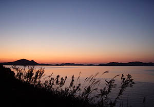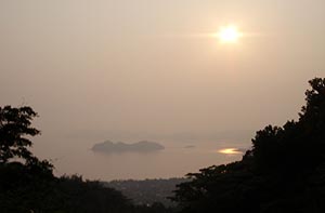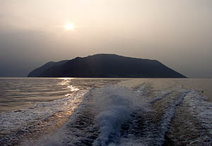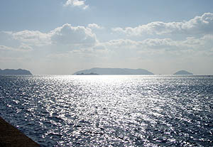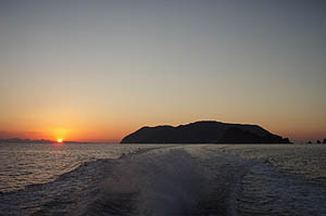 僕は夕方の定期船で島を後にした。夕暮れの海がとてもきれいだった(^_^)。 |