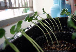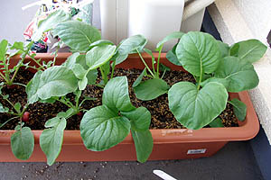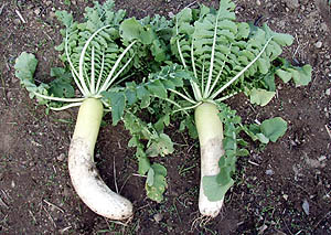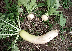 午後から学校の上の畑に上がって農作業。室積のベランダで育てたスナップエンドウの苗を植えた。おそらく今年最後の植え付けになるだろう。次の植え付けは春になってから。それから、あのカイワレダイコン(9/22の日記参照)が立派なダイコンに成長した(^O^)/。2本抜いてみたら1本はちょっと曲っていた(^_^;)。ま、自分で食べるんだから全然問題なし! |