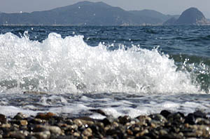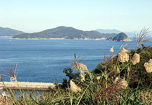 室積のマックスバリュで祝島出身のMさんにバッタリ会い、夕方Mさんの家にカレンダーを持って行こうとしたら、久しぶりだったので道を間違えて、光井の海岸に出た。道を間違えたおかげで、眼の前に祝島が見えて、「ここまで来たら祝島が見えるんじゃぁ」と、得した気分になった。 |