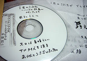 午後からB電器の仕事を終えてアパートに帰ると、みっちさんから「満点ママ」を録画したDVDが届いていた。夜、鍋を食べながら見た。なかなか良く出来ていたと思う。うちも出てきた。撮影の時の話は兄貴から聞いていたが、だいぶNGを出したらしく、映っちゃまずそうなところはしっかりカットされてうまく編集されていたようだ(^_^;)。 |