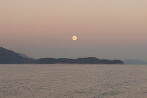 夕方の船でまた島を出た。ずいぶんと日が短くなり、船が室津に着くころには、もうすっかり暗くなっていた。冬至まであとひと月、これからもっと日が短くなるなぁ・・。 |