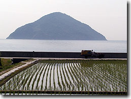 | No.021 「袋がけの終わったビワ畑」 | No.22 「水田と小祝島」 |