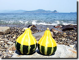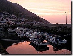 | No.061 「小祝島とビワの実」 | No.062 「夕暮れの祝島漁港」 |