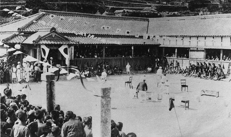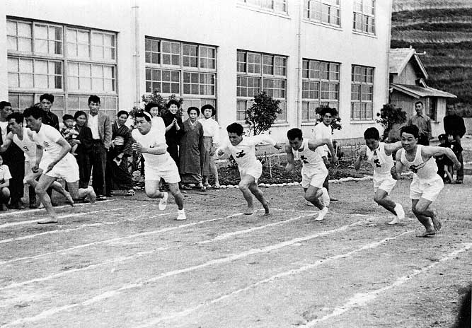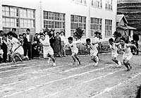 今の大津商店の辺りに学校が建っていた時代の運動会の様子