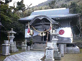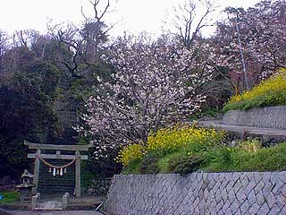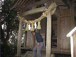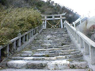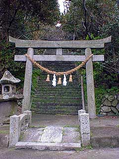 「行者様」(その昔、役の行者が島民のために祈願したと伝えられる祠。島の山頂付近にあります。島の人たちの信仰を集めています。)