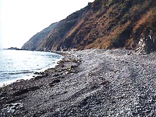 「海岸」(島の海岸線のうち半分は道路もなく、このような海岸が続きます。)