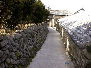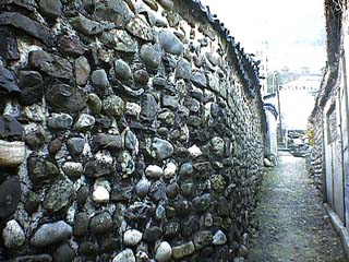 「道」(独特の石積みの壁は今でも多く見られます。)