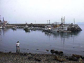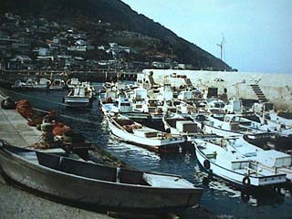 「波止場」(島には防波堤で囲まれた小さな波止場がいくつかあります。)