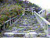 「宮戸八幡宮」(祝島で唯一の神社です。神社に上る階段は2ヶ所あります。)