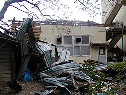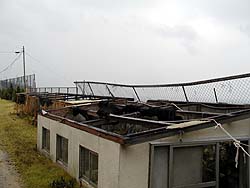 給食室は大被害です。屋根がすべて吹き飛ばされました。 | |
