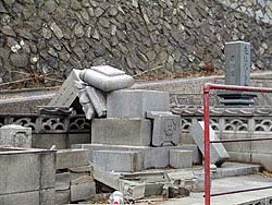 | 西の墓でも東と同様に倒れているものがありました。どちらかというと東の墓の方が被害が大きいような気がしました。 | ||