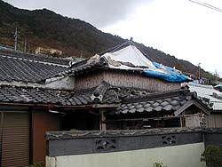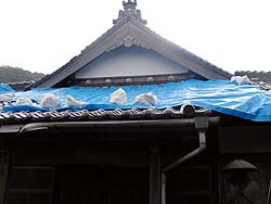 | 木村先生の家も大被害 | 氏本さんの蔵、善徳寺の裏側の屋根も被害 | 薬師さんの屋根瓦も全体がズレているらしい |