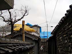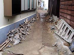| 村田さん宅 | 横町の通り。まだ瓦の破片が残る | 山下さん宅 |