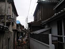 | 松本さん宅 | 旧西岡呉服店の瓦を片付けているところ | 三国さん宅 |
