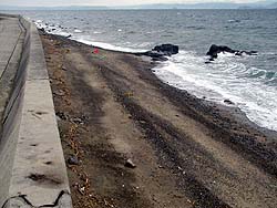 | 大井さん宅 | モチドの海岸は以前は小さい砂利の浜だったが、台風16号と18号で半分砂浜に変わってしまった |