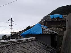 | 藤永さん宅 | 坂本商店も瓦屋根とトタン屋根が被害 | 藤崎さん宅 |