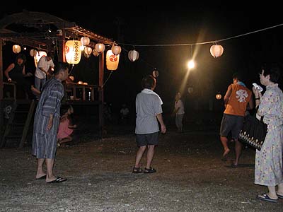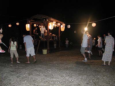 今年の盆踊りは、神舞小屋の近く、水産科広場で行われました。15日には井谷将人さんも参加されていました。あのマーチンさんも踊っていました。