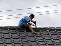 多くの民家の瓦が吹き飛ばされた 学校は大被害 電柱も何本か折れたり傾いたりした