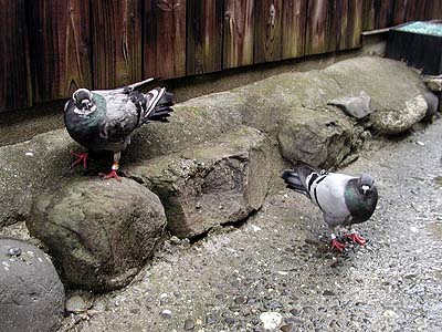 台風21号の少し前から、足に番号の入った足環をはめたハトが2羽、祝島にやってきて、エベス商店から出田さんの家の前あたりに住み着いていました。宇和島(ウヤシマ)あたりで釣りをしていた漁船について祝島までやって来たらしいのですが、いったい何しにやって来たのでしょうか?伝書鳩レースの途中に台風を避けるためにやって来たのかな?それとも祝島の誰かに伝言を持ってきた?