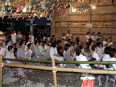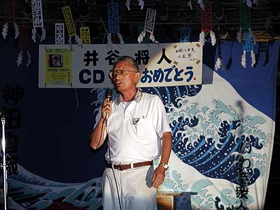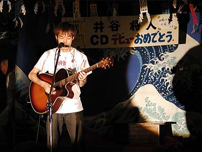 7月にCDデビューした井谷将人さんが8月16日の夜、神舞小屋でライブコンサートを行いました。井谷さんは祝島出身の西岡八重美さんの息子さんです。CDデビューを応援してくれた祝島の人たちへの感謝の凱旋ライブでした。会場にはたくさんの島民の皆さんがかけつけ、手拍子で歌を楽しんでいました。