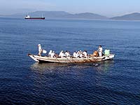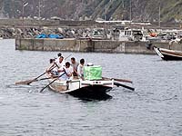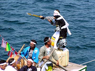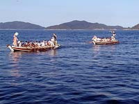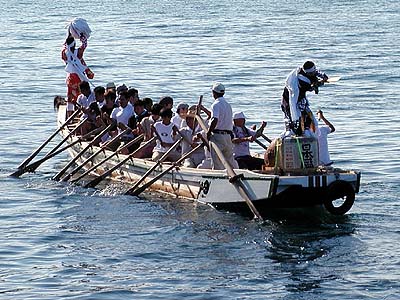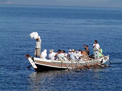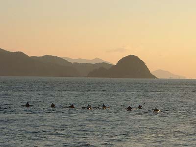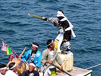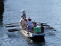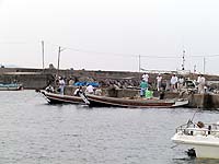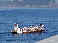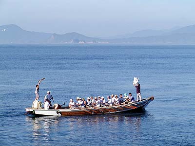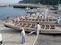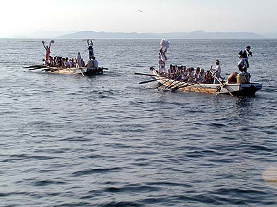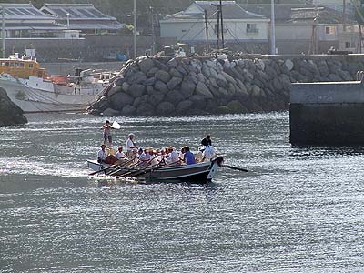 | いよいよ海へ! | 櫂伝馬に慣れているオジンたちは 少人数でもスイスイ漕いでいきます |