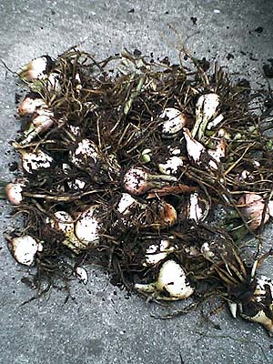 以下、ユリ根を掘るところからカタクリ粉になるまでを取材しました。かなり手間のかかる作業でした。