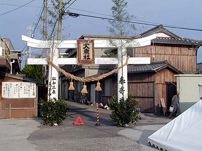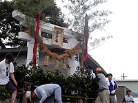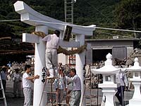 | 吹流しもついてほぼ出来上がり | こちらは江尻の大鳥居 | 鳥居山とヤーサーも復活! |