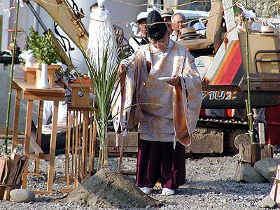 | 地鎮祭には伊美から桐畑宮司さん が来られました |