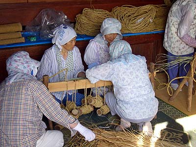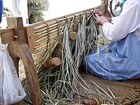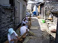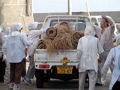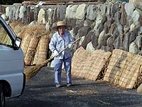 神舞まであと1ヶ月。神舞小屋に使う苫作りが行われています。作業は組毎に行われます。