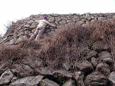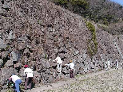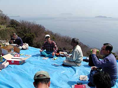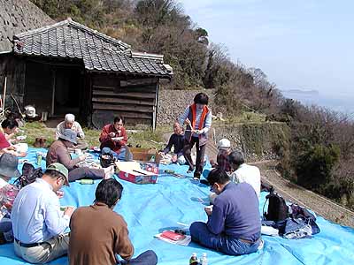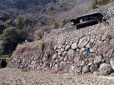 「石垣を讃える会」の佐々木代表の呼びかけで、祝島の平さんの田圃の石垣の草刈りが行われました。祝島から橋部さんはじめ4名、上関・室津・田布施・平生・柳井・光など近郊から13名が参加されました。
