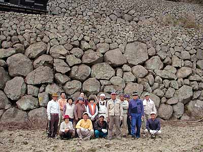 平さんの田圃の石垣は昨年から注目を集めており、平さんご自身でもだいぶ草刈りをされていましたが、今回は道の下の田圃の草刈りを参加者全員で行いました。今日は天気もよくて、作業中は暑いくらいでした。2時間近く作業を行い、石垣の全貌がきれいに現れ、下からの壮観な眺めに皆さん満足げな表情でした!
