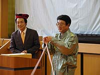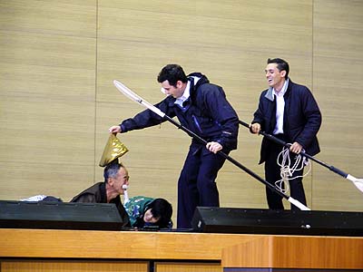 10月23日(土)に東京・池袋の東京芸術劇場において、「祝島の神舞」ビデオ上映会が開催されました。社団法人全日本郷土芸能協会が主催したものです。当日は80名の定員が満員になったようです。祝島から橋部さんが特別講演の講師として出演されました。参加者の皆さんには大変好評だったようです。KRY山口放送の取材もあったようですよ。
