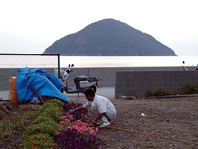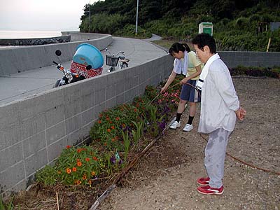 三浦(神舞の発祥の地)での神事を行う広場には島のオバちゃんたちが花を植えて毎日夕暮れ時に行っては水やりをしています。こういう目立たないところでもオバちゃん達はがんばっています。