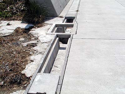 | 通り矢付近の海岸道路では 側溝のフタが数箇所吹っ飛んでいた |