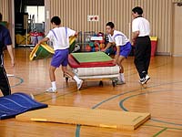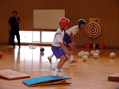 9月24日、祝島中学校の「運動を楽しむ会」が開催されました。台風のために中止になった「さわやか運動会」の代わりに開催されたものです。体育館もガラスが何枚も割れるなど台風の被害を受けましたが、先生と生徒の皆さんや地域の皆さんの復旧作業のおかげでなんとか開催することができました。